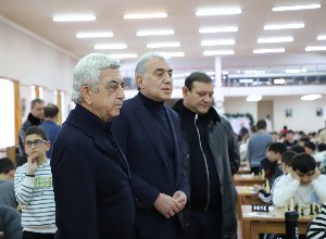 Today the third President of the Republic of Armenia and the President of the Armenian Chess Federation, Serzh Sargsyan, visited the Chess Academy of Armenia to observe the ongoing 16th Andranik Margaryan Memorial Tournament.